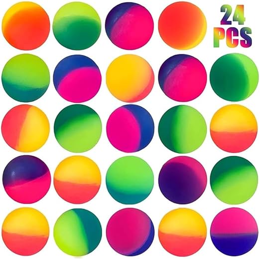 Add a splash of fun to any event with this set of 24 rainbow mini bouncy balls! Perfect for party favors, piñata surprises, goodie bags, or just everyday fun, these bright and colorful balls bring joy to kids of all ages.