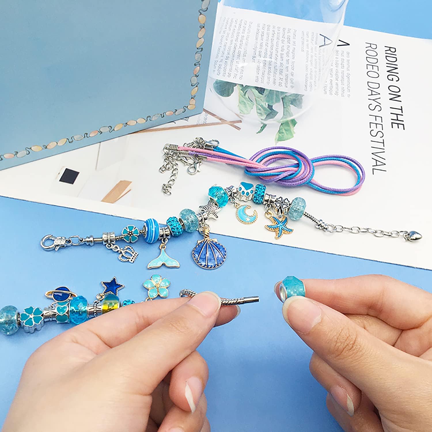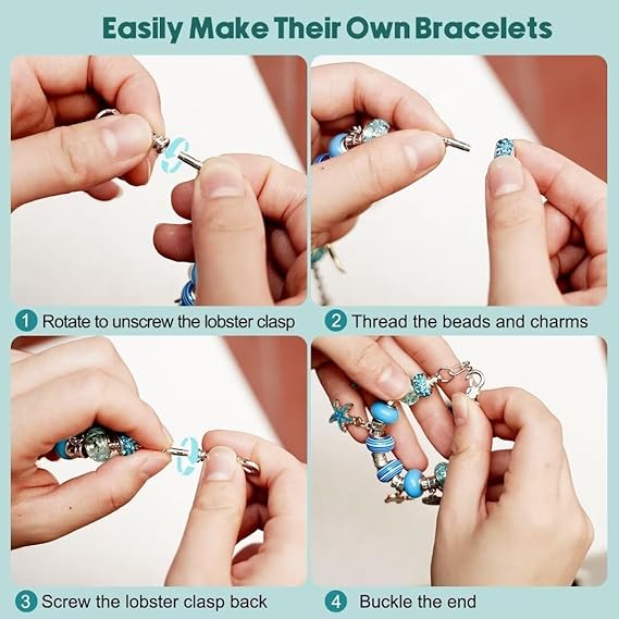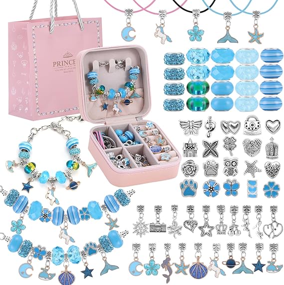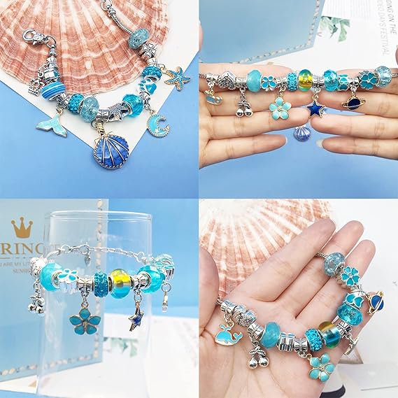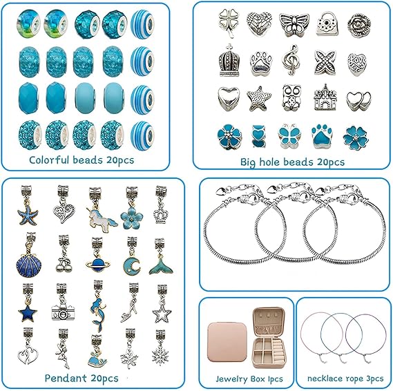 Set Includes: 3 bracelets, 3 wax strings, 20 charm beads, 20 big hole beads, 20 alloy pendants, jewelry box & gift bag