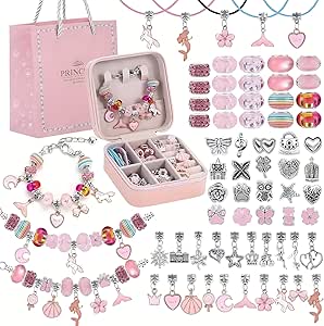 Create beautiful accessories with this DIY Charm Bracelet Making Kit. Each set includes bracelets, necklace strings, colorful beads, pendants, and charms, giving kids endless ways to design and personalize their own jewelry. The detachable bracelets are easy to use—simply add, swap, and rearrange charms to create unique styles every time. Packed in a beautiful storage box, this kit is fun, creative, and perfect for inspiring imagination in kids ages 6–12.
