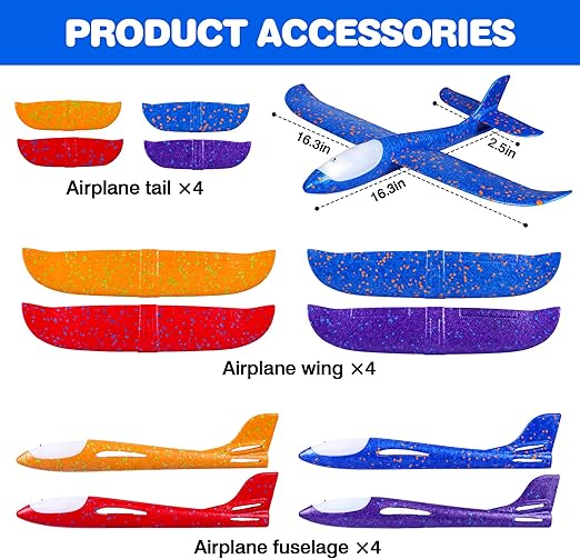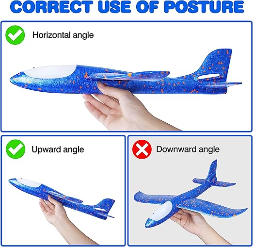 Easy to Assemble & Use: Just turn on the LED light switch, attach the wings and tail, then throw the plane horizontally or at an upward angle for smooth gliding.